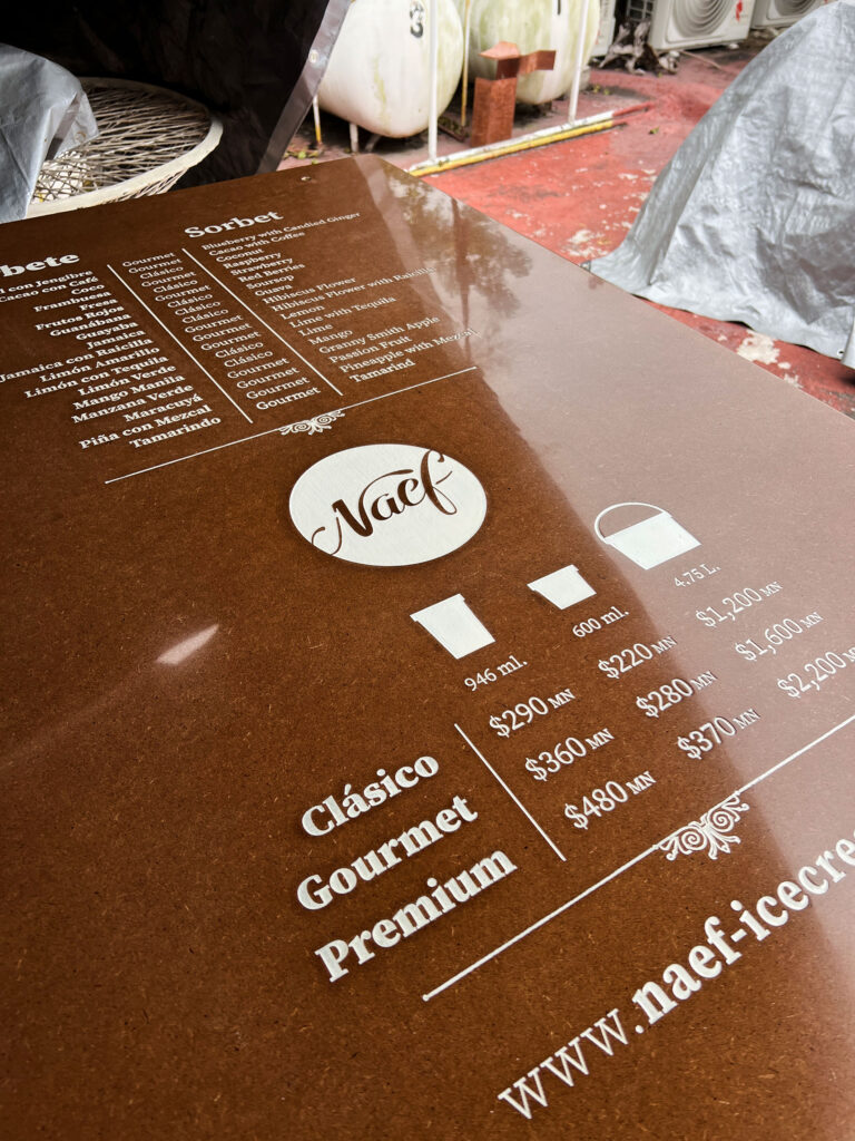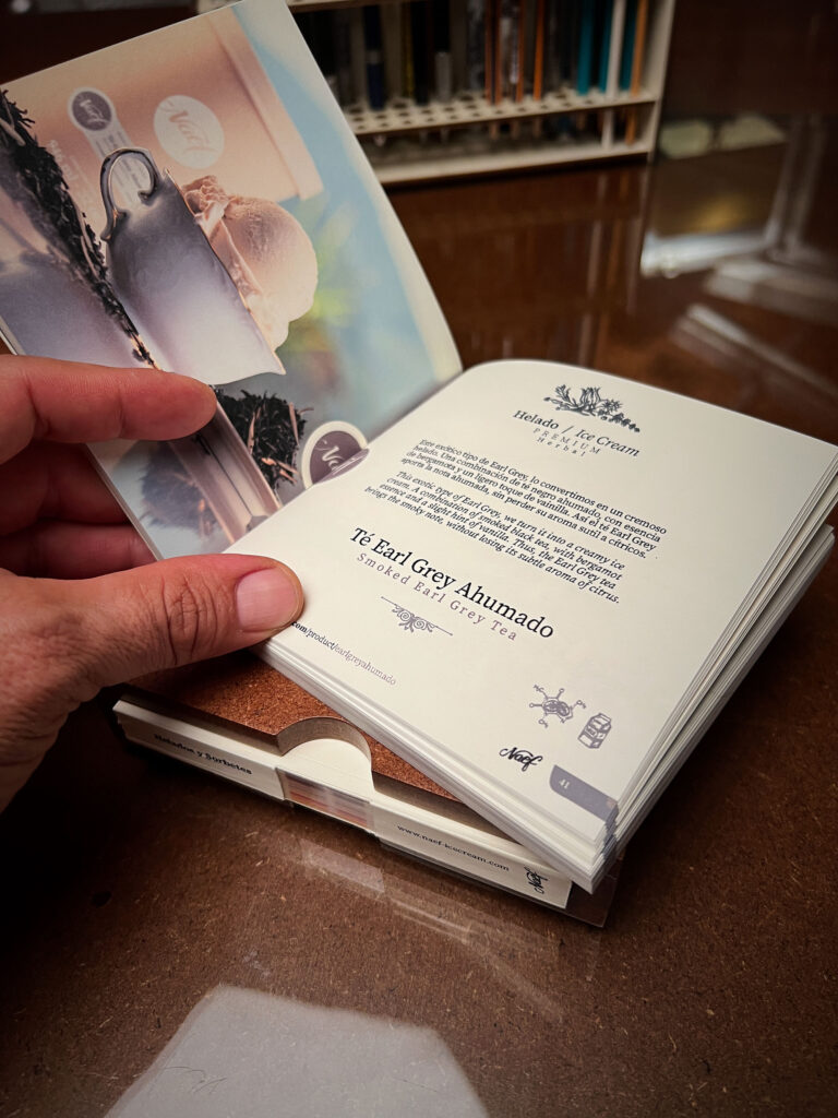 One of the most important characteristics is texture, the softness of Naef ice creams is now represented with friendly and fluid strokes, encapsulated in a circle as the ice cream ball and flavor. This gives a very important iconic power.