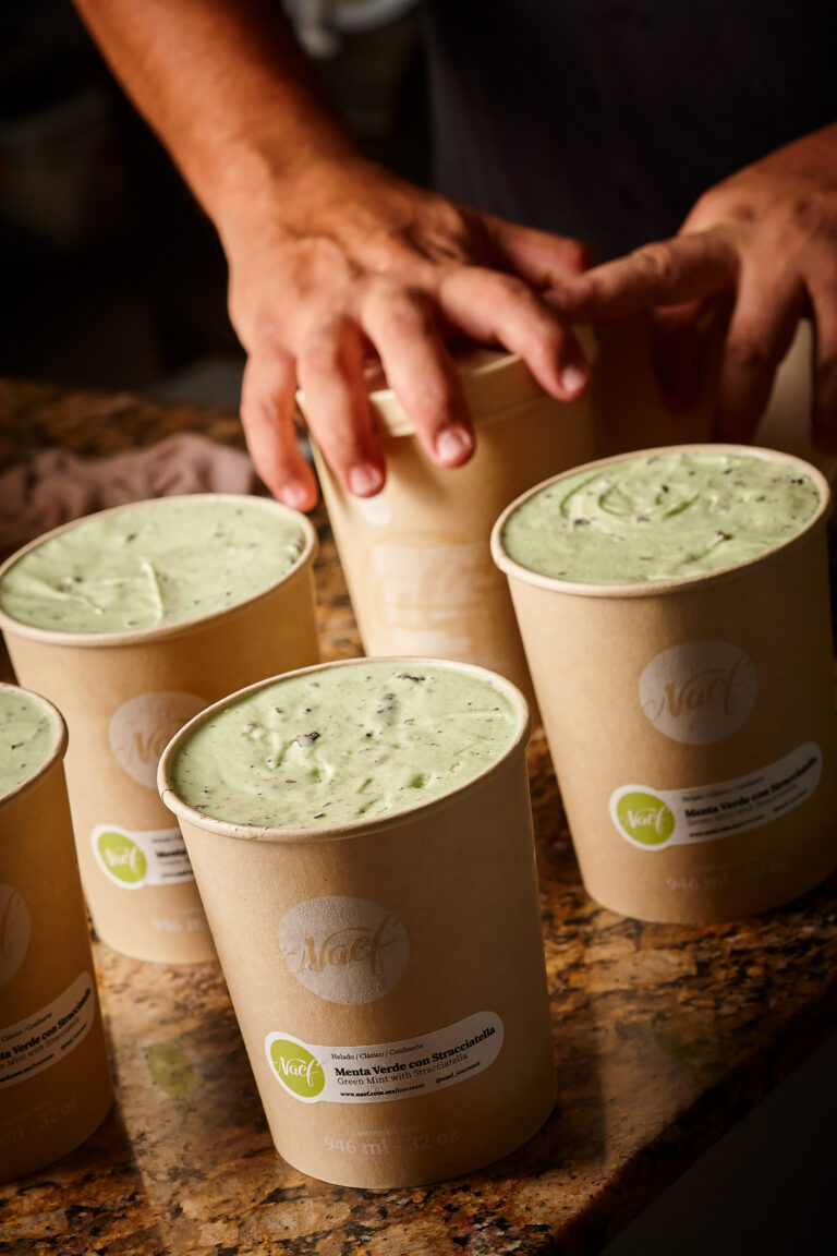 We kept the recycled bamboo packaging, it is our grain of sand, our way of remaining faithful to our ideals, and to highlight its natural color, we decided that the image would be in a soft, discreet white color, which we assure you will easily find on the shelves or in the refrigerators. To recognize the flavor you are looking for, we added a small label with the name of and the Naef logo in the color related. Now it is much easier to find your favorite ice cream or sorbet in your refrigerator, and ours.